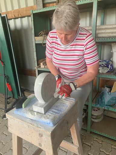 Om een steen heendraaien en bedenken welke kant ik opga is iedere keer weer een puzzel en verrassing. Dat er uit zo'n brok steen uiteindelijk een beeld tevoorschijn komt waar ik trots op kan zijn vind ik iedere keer weer geweldig. Soms weet ik op voorhand wat ik uit de steen wil halen, maar net zo vaak ontstaat het organisch. En het gebeurt ook geregeld dat ik mijn idee weer moet bijstellen omdat bijvoorbeeld een stuk steen afbreekt etc. Dit blijft daardoor een boeiend proces.